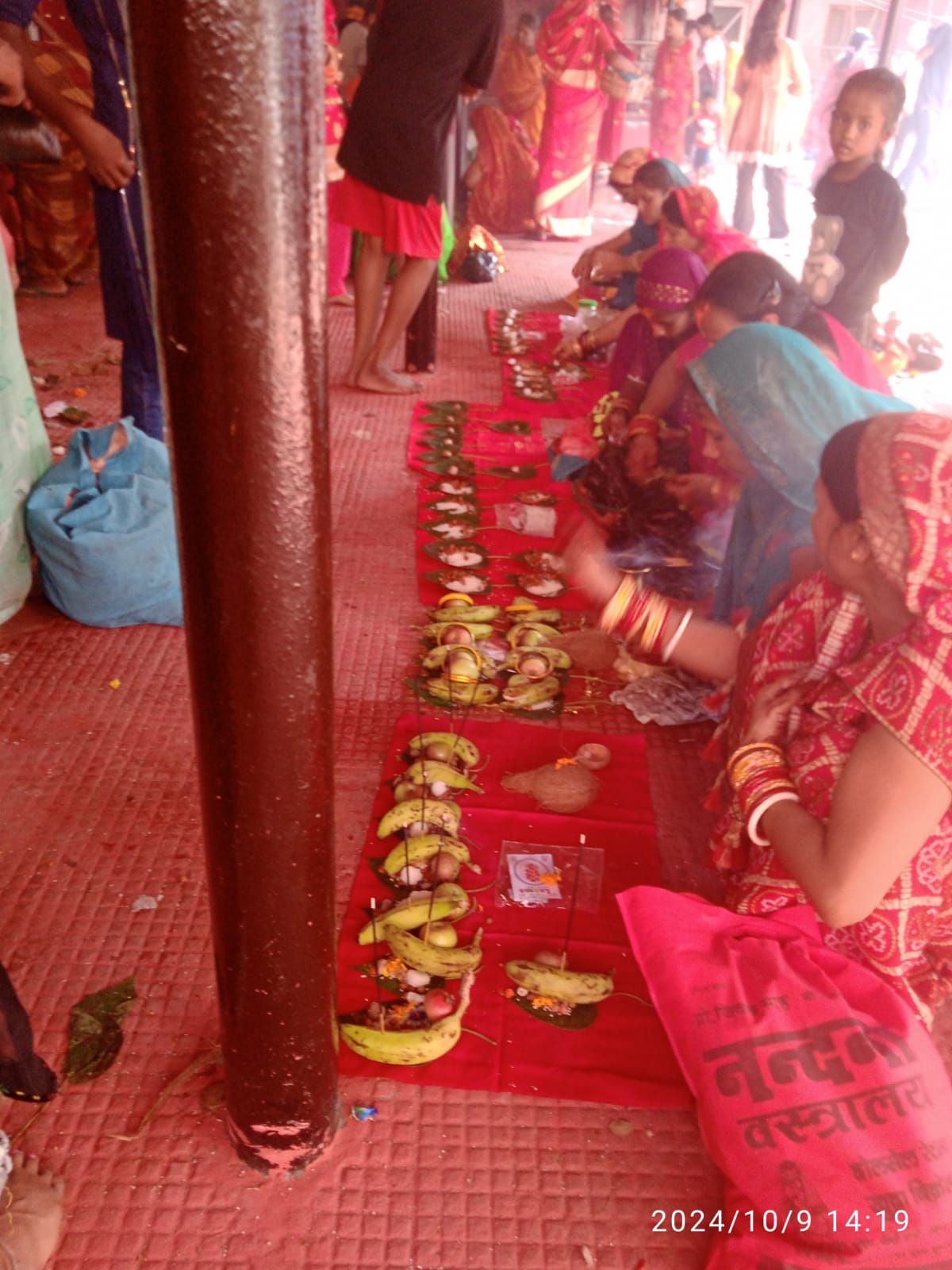 शारदीय नवरात्री अन्तर्गत मिथिलानी महिलाहरु जनकपुरधामको प्रसिद्ध शक्तिपिठ राजदेवी मन्दिरमा ‘खोइँछ’ (पोल्टा) भर्ने विधि गरिरहेका छन् । जनकपुरधाम लगायत वरपरको गाउँ गाउँबाट आएका विवाहित महिलाहरु बुधबार बिहानैदेखि खोइछ भरिरहेको महावीर युवा कमिटीका पूर्व अध्यक्ष विनोद चौधरीले जानकारी दिए । उनका अनुसार राजदेवी मन्दिरमा बुधबार बिहानैदेखि खोइछ भरी चलिरहेको छ, बाँकी रहेका श्रद्धालुहरु शुक्रबारसम्म खोइछ भर्न पाउने छन् ।