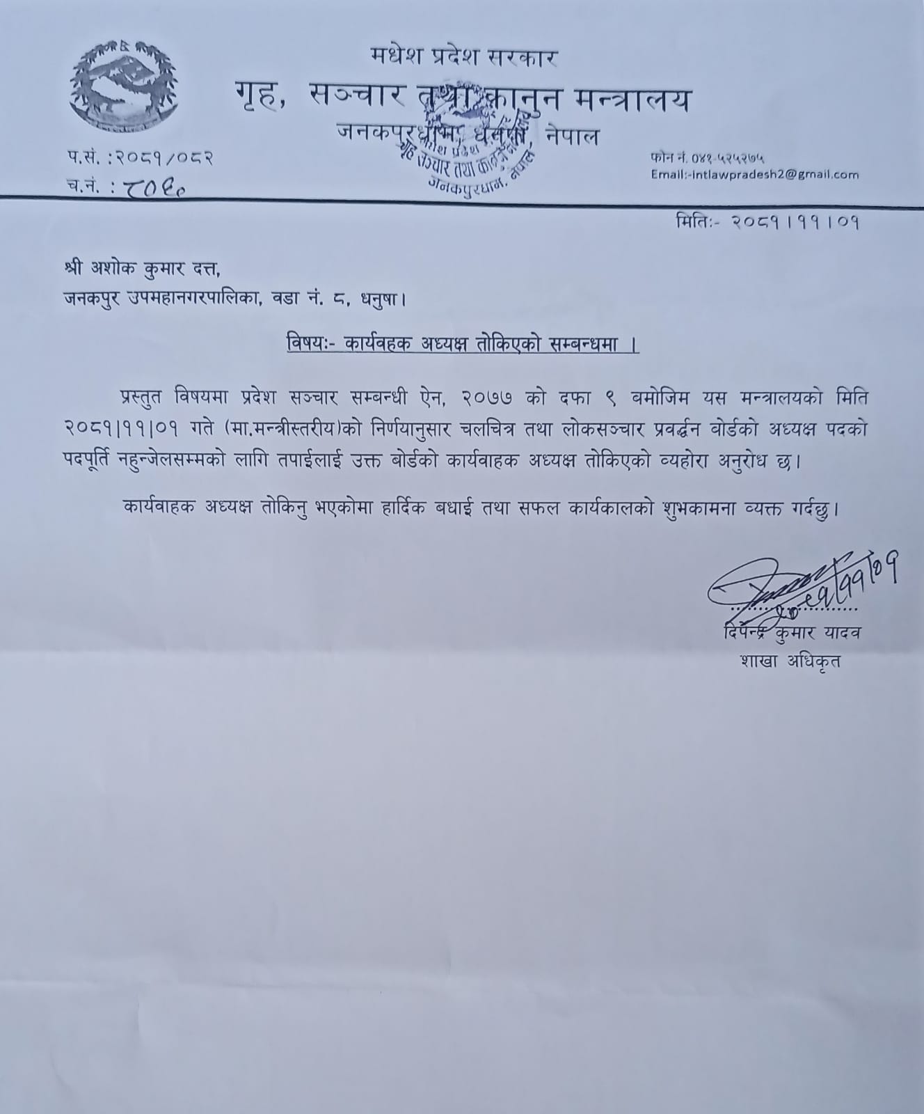चलचित्र तथा लोकसञ्चार प्रवर्द्धन बोर्डको कार्यबाहक अध्यक्षमा अशोक दत्त