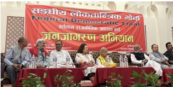 काठमाडौं । संघीय लोकतान्त्रिक मोर्चाले आजदेखि जनजागरण अभियान सुरु गर्दै छ । काठमाडौंको कालिकास्थानस्थित अमृतभोग पार्टी प्यालेसमा एक कार्यक्रमबीच ‘वर्तमान राजनीतिक अवस्थाबारे जनजागरण अभियान’सुरु गरिने […]